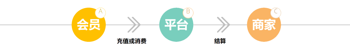 会员到商家处消费,总部抽取一定比例的佣金,然后再按照比例分给各级代理商,余下佣金即为平台利润。